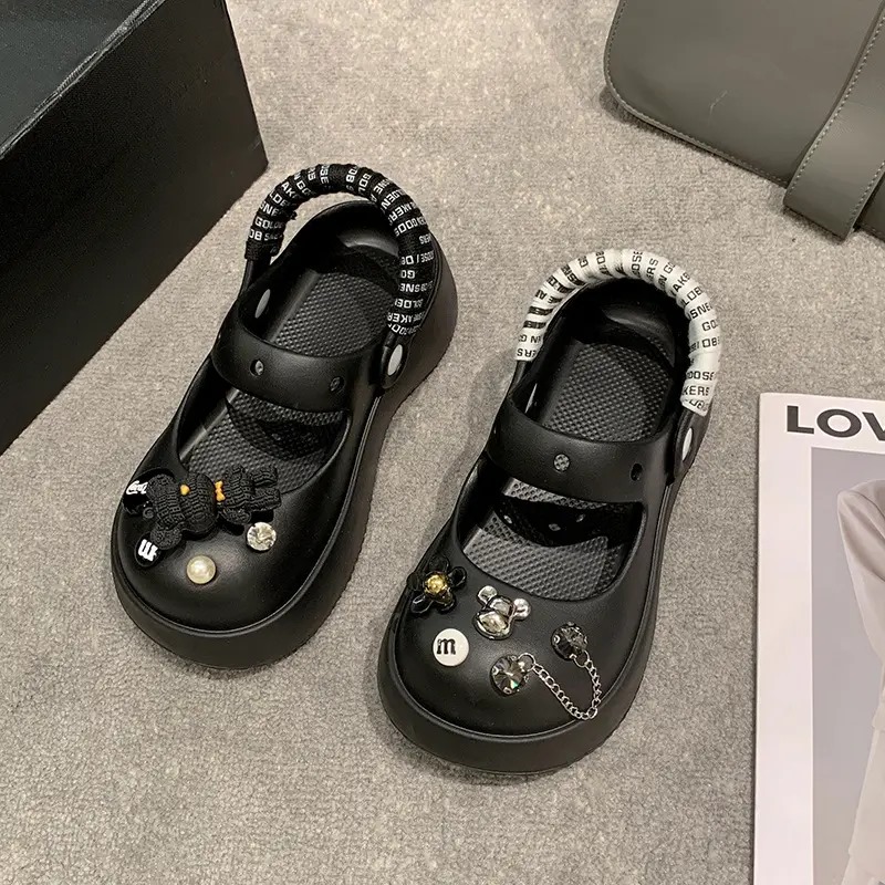 Discover the perfect blend of comfort and style with our Mary Jane Crocs. Featuring a unique Mary Jane strap design and adorned with chic, decorative charms, these crocs offer both functionality and flair. The cream color adds a touch of elegance, making them versatile enough for various occasions.
